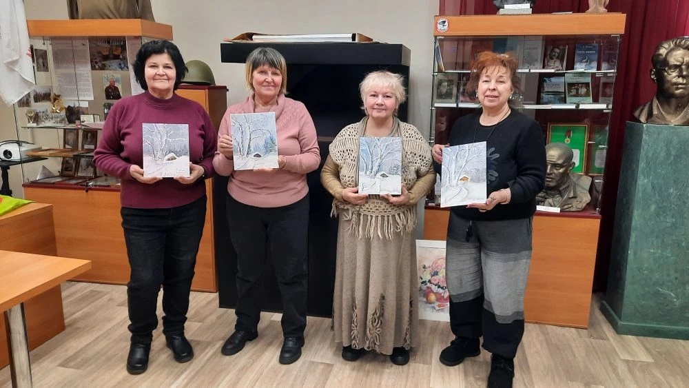 Несколько занятий были посвящены созданию зимнего пейзажа. И хотя за окном уже вовсю цветет весна, мы рады представить вам результат кропотливой работы наших художников.