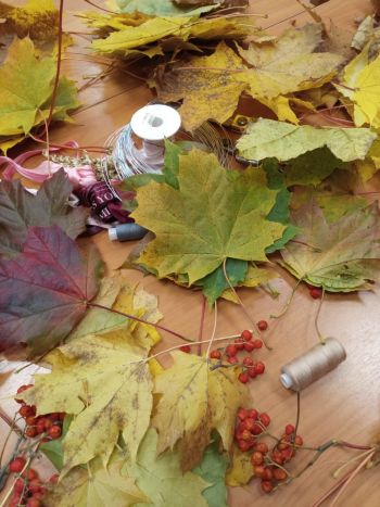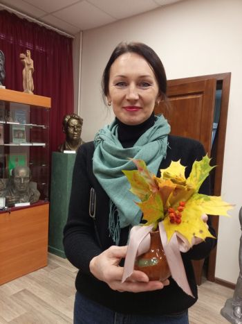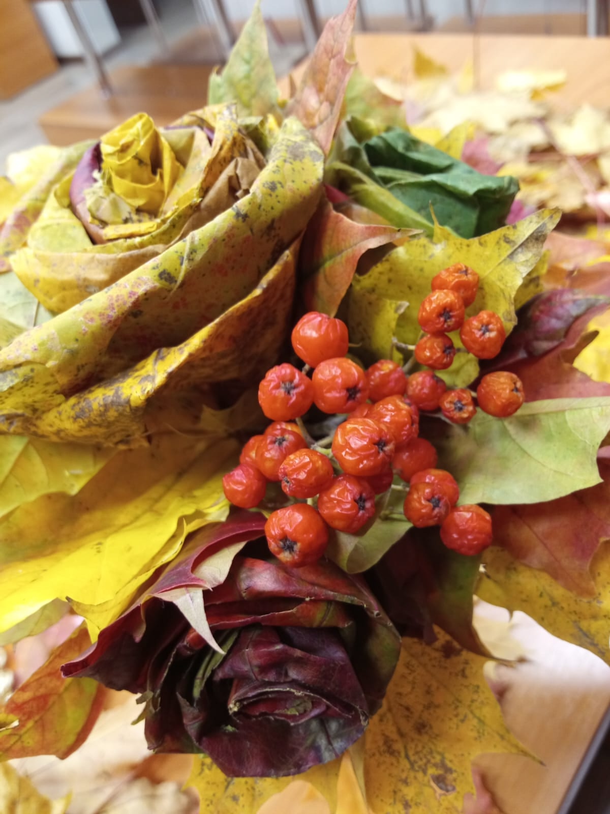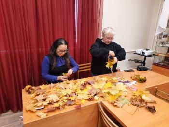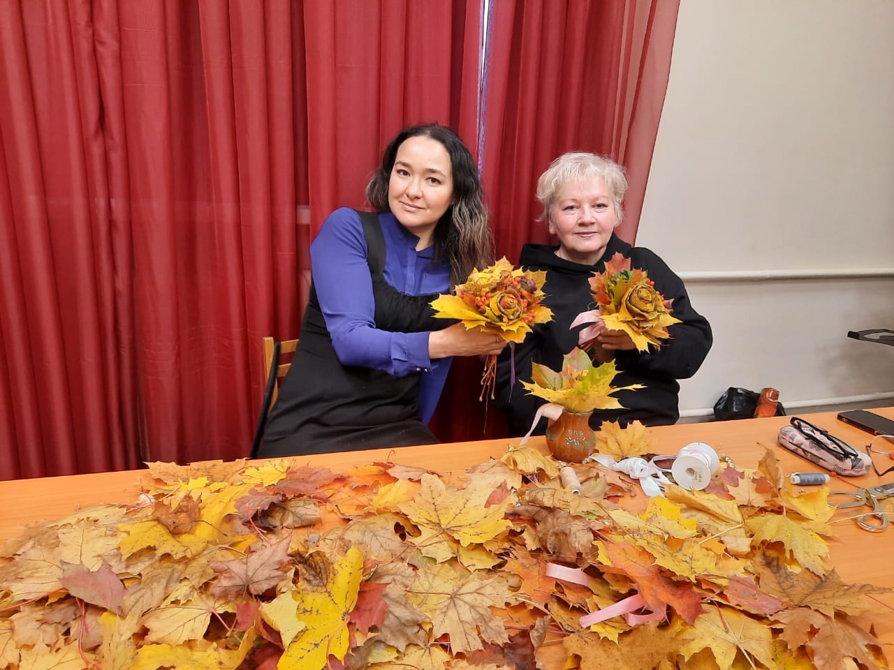 В минувшую субботу в Ельнинском музее вновь работала творческая мастерская Риммы Зуевой. В этот раз участники мастер-класса создавали осенний букет – розы из кленовых листьев. Яркие, багряные лепестки, ловко скрученные, превращались в изящные цветы, напоминающие о красоте увядающей природы.